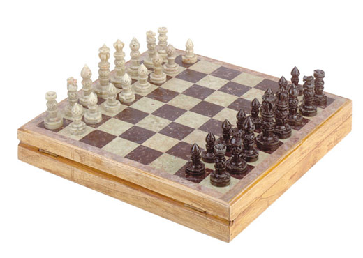 Pieces range from 1 3/4" to 2 3/4" high. Board 12" x 12" x 1 3/4" high.