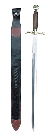 30024 Collector's sword with stainless steel blade, brass bolster, shesham wood handle and split-leather sheath. $49.95